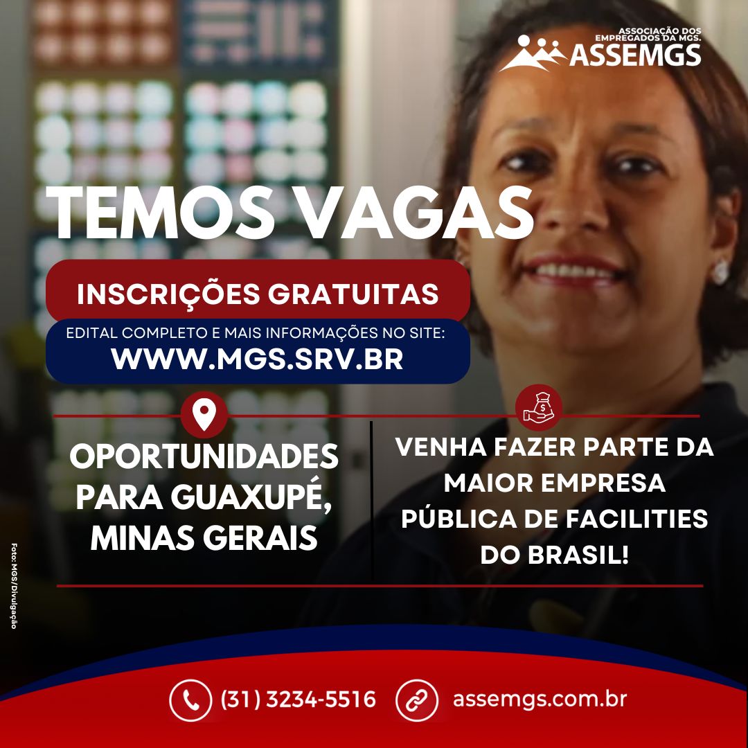 Fique atento ao nosso processo seletivo. Esta é a sua chance de fazer parte da maior empresa pública de serviços de Minas Gerais.Estamos oferecendo 40 vagas para profissionais com Ensino Fundamental, e as inscrições já estão abertas!Para mais informações, confira o edital completo no site: www.mgs.srv.br